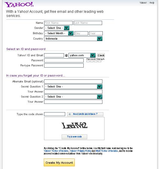 Cara Membuat Email di Yahoo.Com atau Yahoo Mail ternyata tidak sulit dan juga gratis sebelum kita membuat email, apa pengertian dan gunanya email ??? Email adalah surat elektronik yang menggantikan surat dan internet adalah sebagai pak pos nya. jadi kalau kita ingin mengirim surat, sekarang tinggal kirim lewat email.